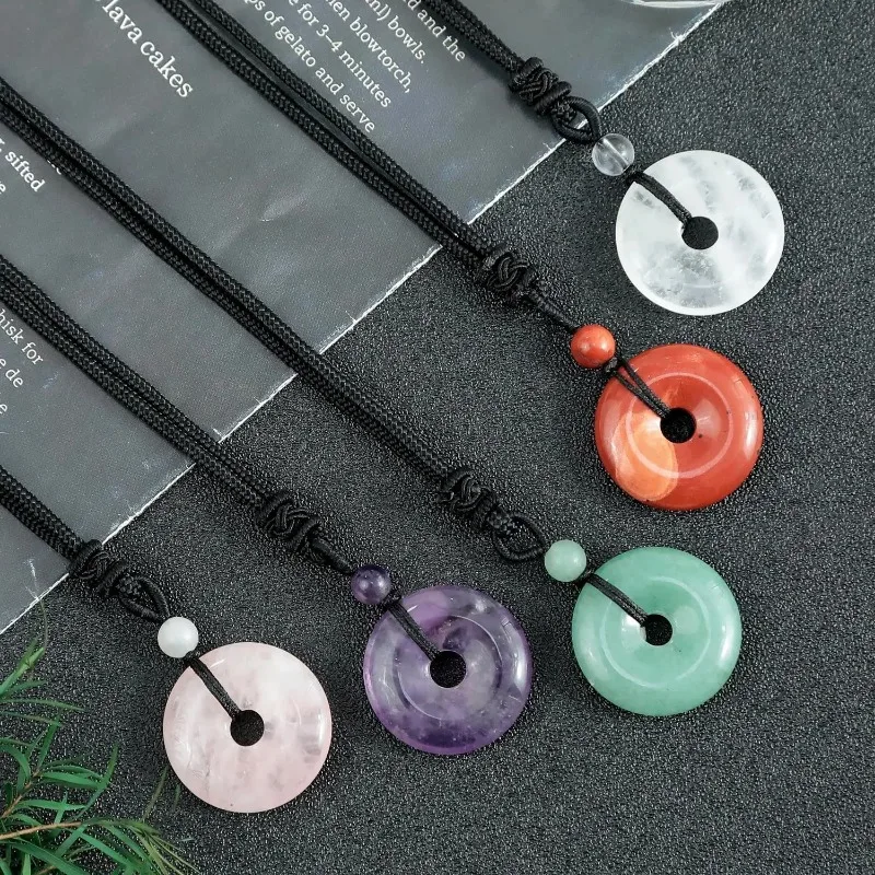 Natural Lapis Quartz Aemthyst Carved Crystal Healing Jade Donut Necklace